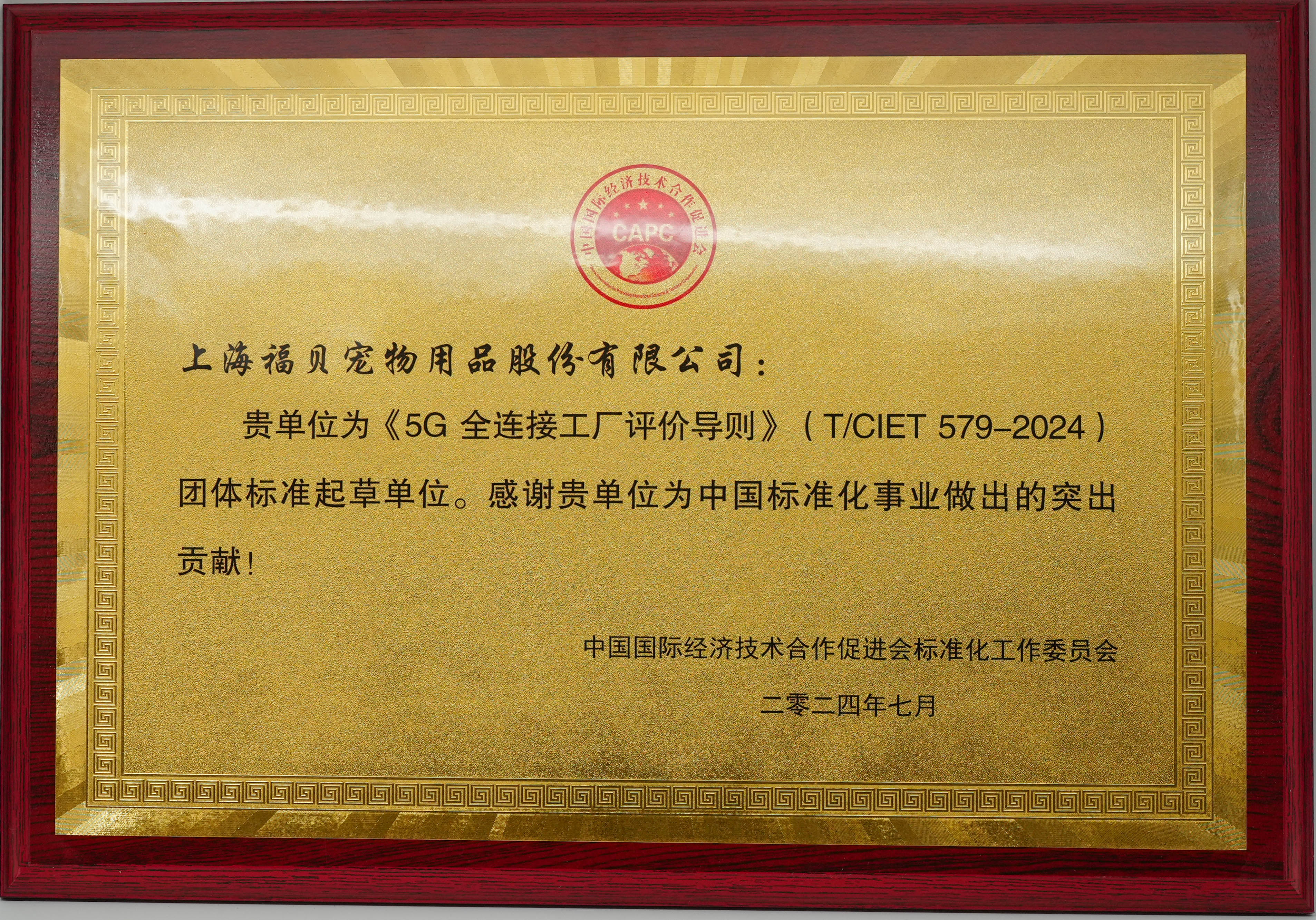 2024中阿G60合作發展促進中心參訪基地、5G全連接工廠評價導則起草單位、高新技術企業、專精特新企業、專家工作站、專利試點企業、寵物行業最具競爭力企業、全國寵物飼料十強企業等